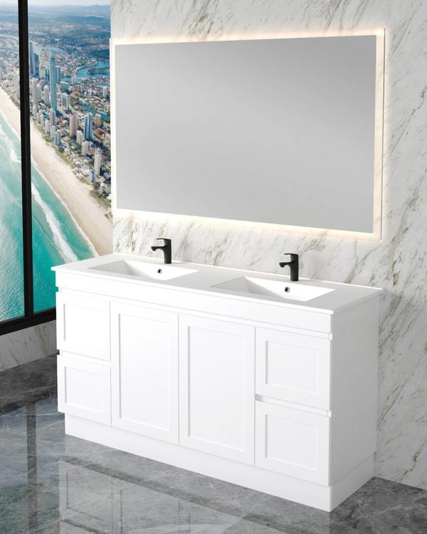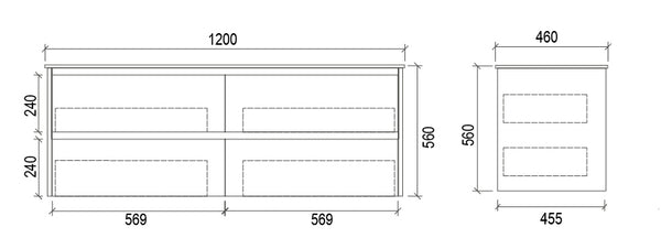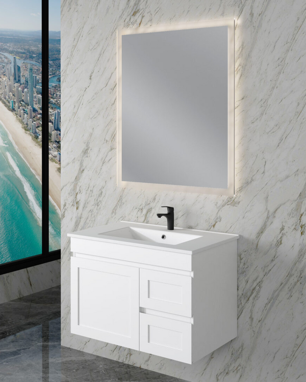 Vanity Colour Matte white Materials Plywood VANITY SIZES 1200mm BY NUMBER OF BASINS Single Bowl VANITY CATEGORIES Single Bowls, Wall Hung Vanity Riva Luxury Vanity Miami Gross Weight 38kg Packaging Dimensions 1220*490*545mm TOP Cabinet Only, With Eden Ceramic Top, With Handy Ceramic Top, With Volvo Polymarble Top