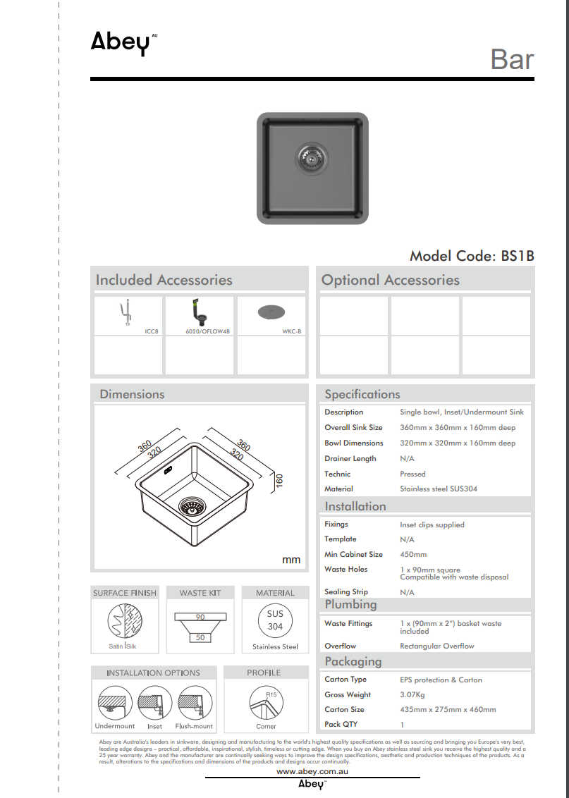 BAR SINK - BOWL 320 X 320 - BLACK PEARL