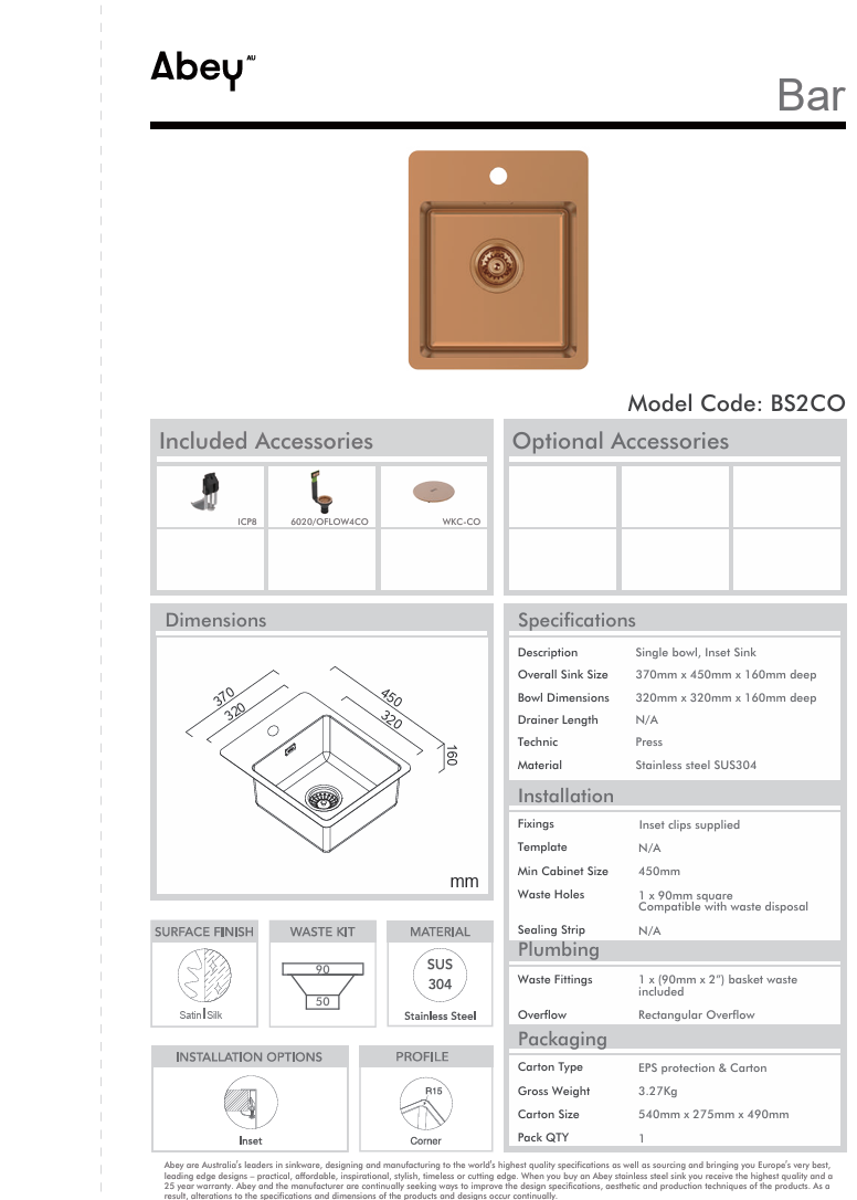 BAR SINK WITH TAP LEDGE - ARTISAN COPPER