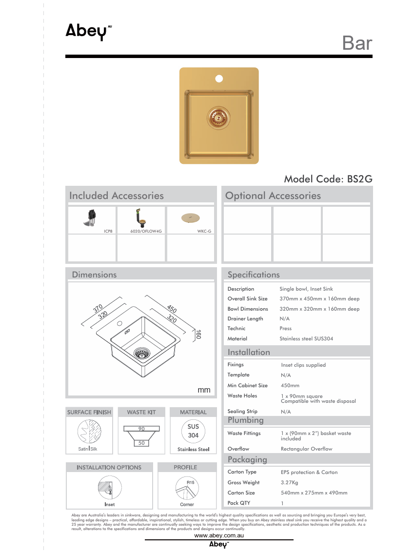 BAR SINK WITH TAP LEDGE - EUREKA GOLD