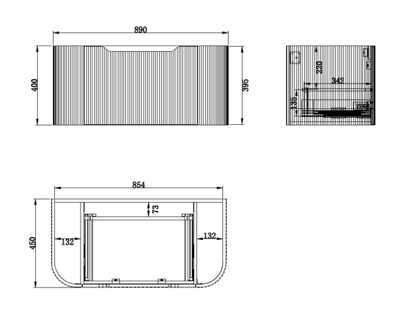 Bergen solid timber wall hung vanity 890x450x400mm. The big curved corner goes with a matched White Carrara or Pure White stone top. The big space-saving drawer could use the Art design bottle trap for easy plumbing (if needed please ask customer service).