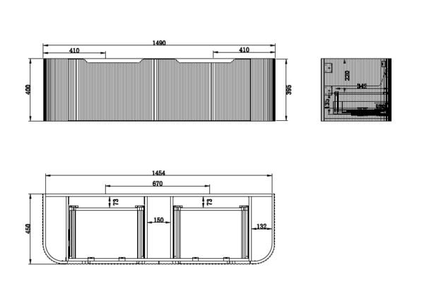 Bergen solid timber wall hung vanity 1490x450x400mm. The big curved corner goes with a matched White Carrara or Pure White stone top. The big space-saving drawer could use the Art design bottle trap for easy plumbing (if needed please ask customer service).