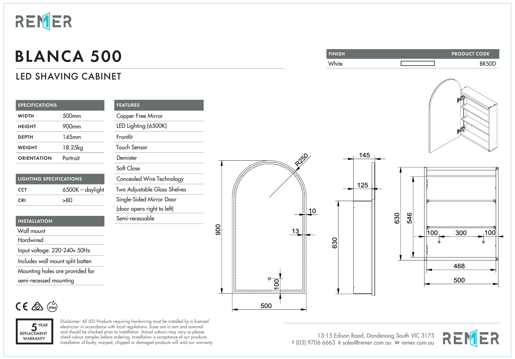 Blanca - 500 x 900 x 145