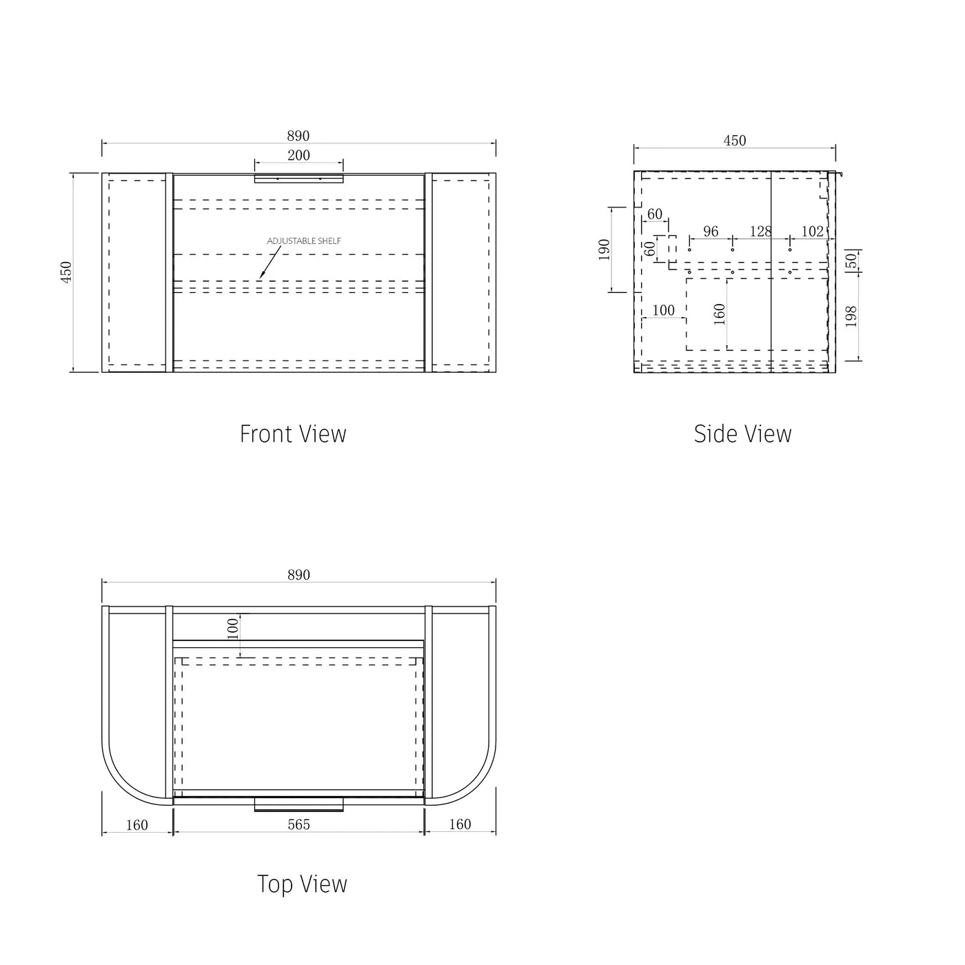 Bondi 900mm Natural Oak Wall Hung Curve Vanity
