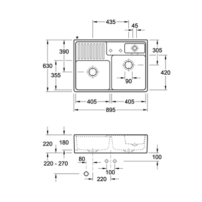 Butler 895 Double Sink 1 Tap Hole | Soap Dispenser | CeramicPlus