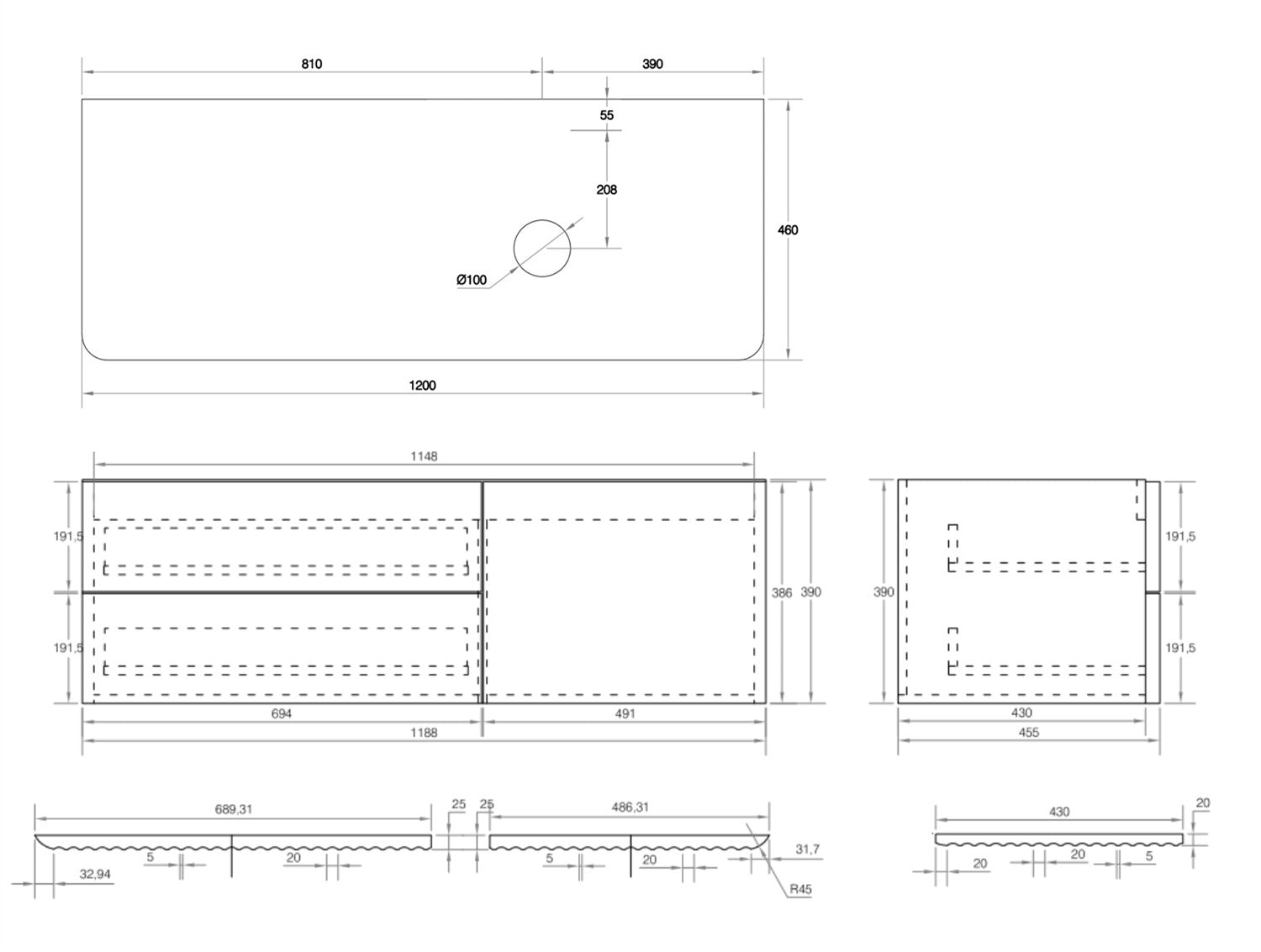 - Elegant R45 Curve Corner with V-Groove Cabinetry;15mm Ultracompact Sintered Porcelain Top, High-Heat Structure, Fortified Frame