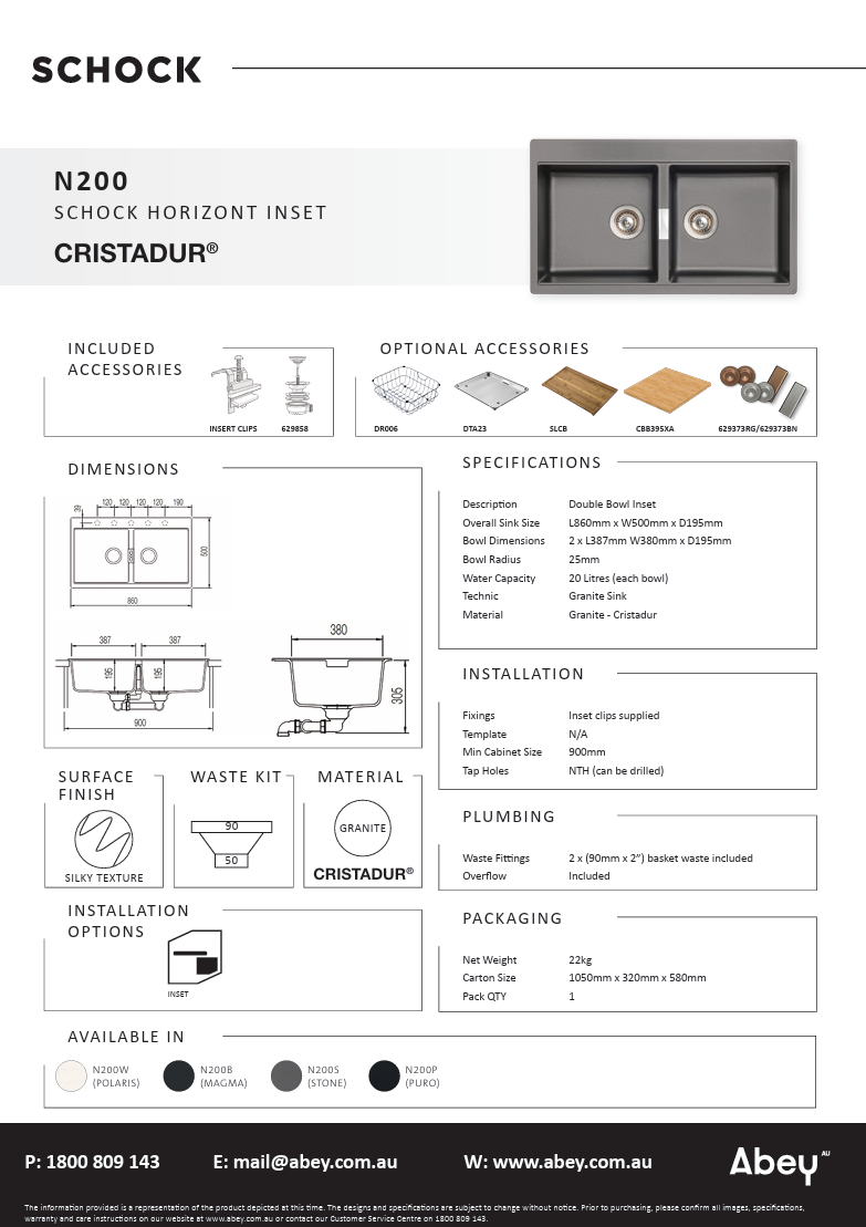 HORIZONT N200 STONE DOUBLE BOWL SINK