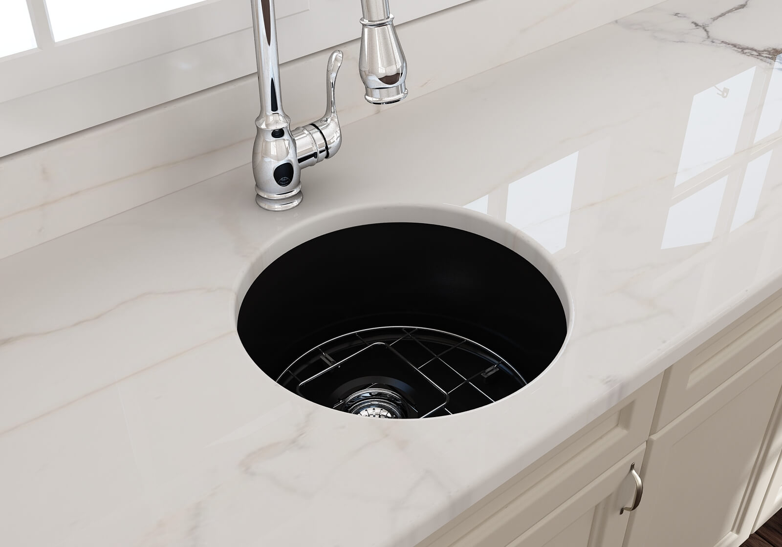 KIT - Cuisine Round 47 Inset / Undermount Fireclay Sink - Matte Black