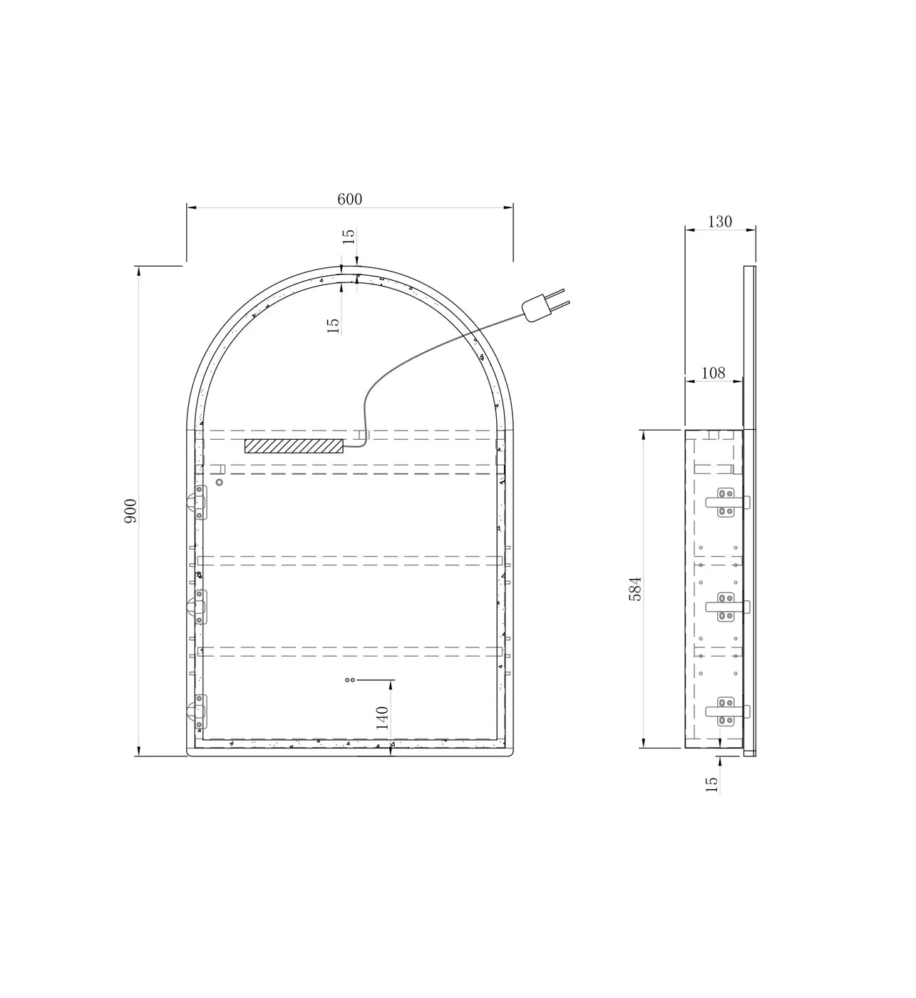 LED Archie 900x600 Black Oak Shaving Cabinet