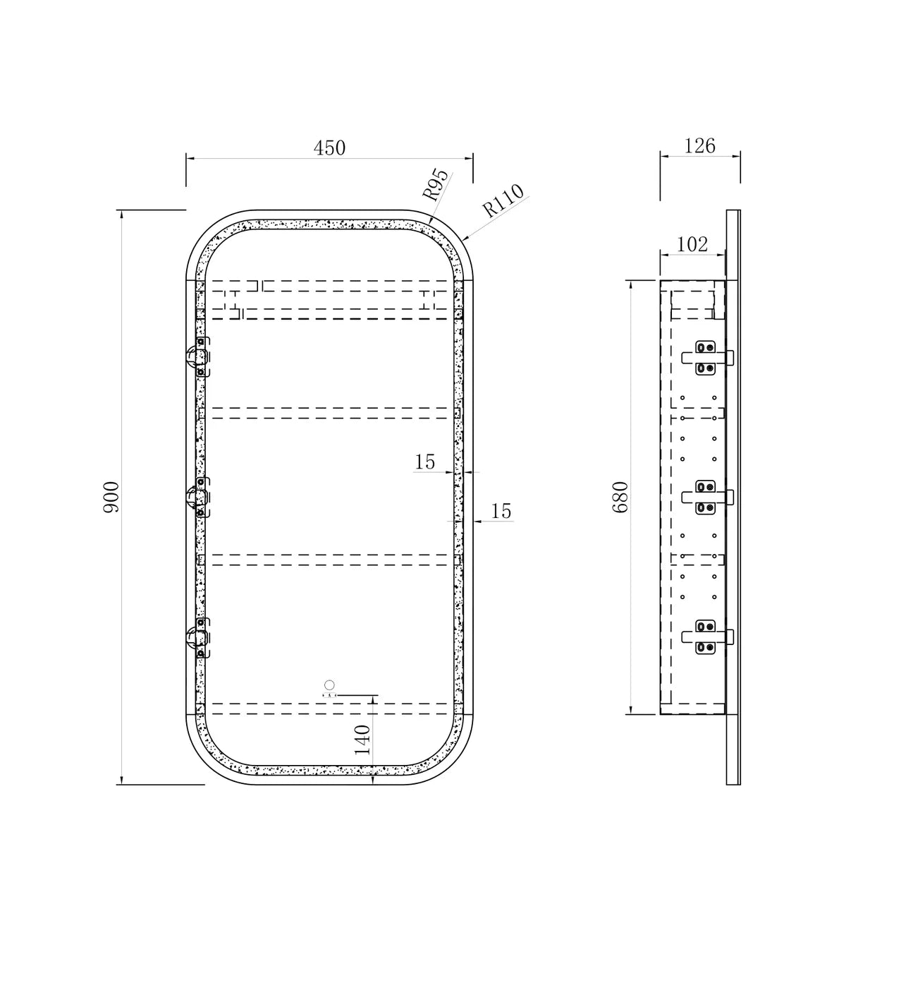 LED Newport 900x450 Black Oak Shaving Cabinet Soft Square