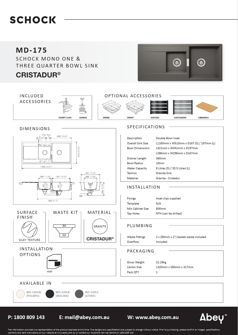 Schock invented the granite sink in Germany over 30 years ago. With stunning crisp lines and a silky-smooth finish, the quality German made sink ware has been created using state-of-the-art composite Nano granite® materials. It offers exceptional strength and durability, are stain resistant and inert with antibacterial properties.