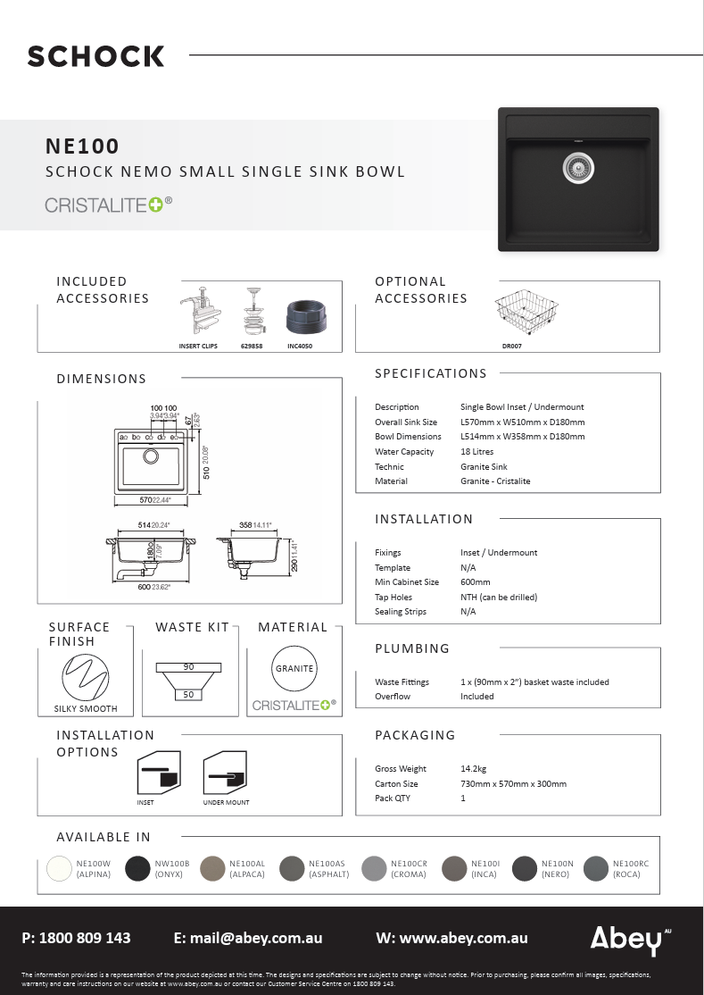 Schock invented the granite sink in Germany over 30 years ago. With stunning crisp lines and a silky smooth finish, the quality German made sinkware has been created using state-of-the-art composite Nanogranite® materials. It offers exceptional strength and durability, are stain resistant and inert with antibacterial properties.
