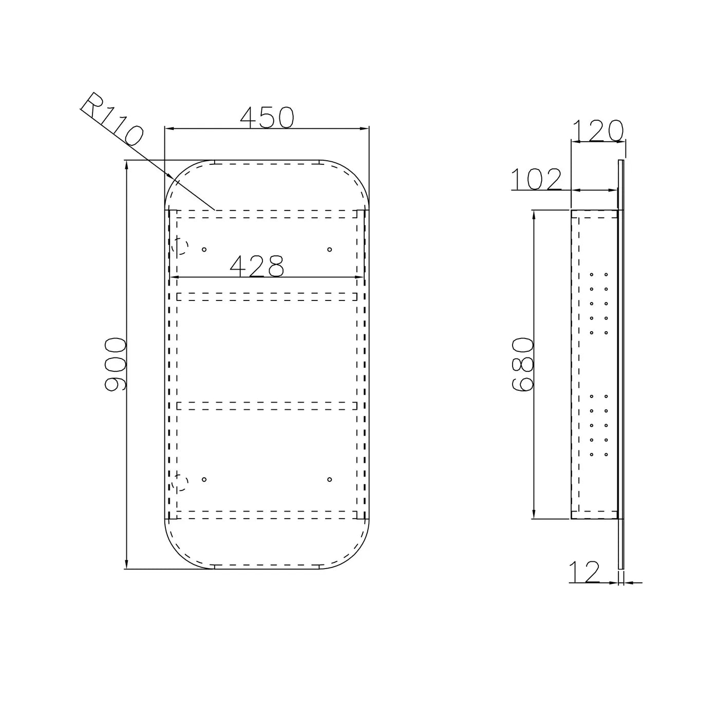 Newport 900x450 Black Oak Shaving Cabinet