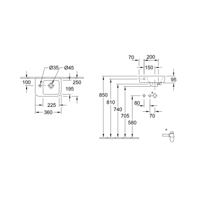 O.novo 2.0 360 Hand Wash Basin Left Hand 1 Tap Hole Right Hand Bowl
