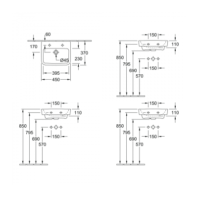 O.novo 2.0 450 Hand Wash Basin No Tap Hole NO Over Flow