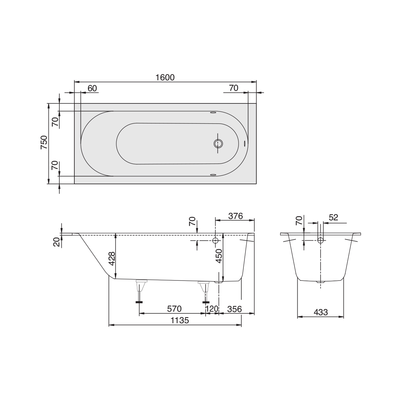 Oberon 1600 Drop In Bath White Overflow
