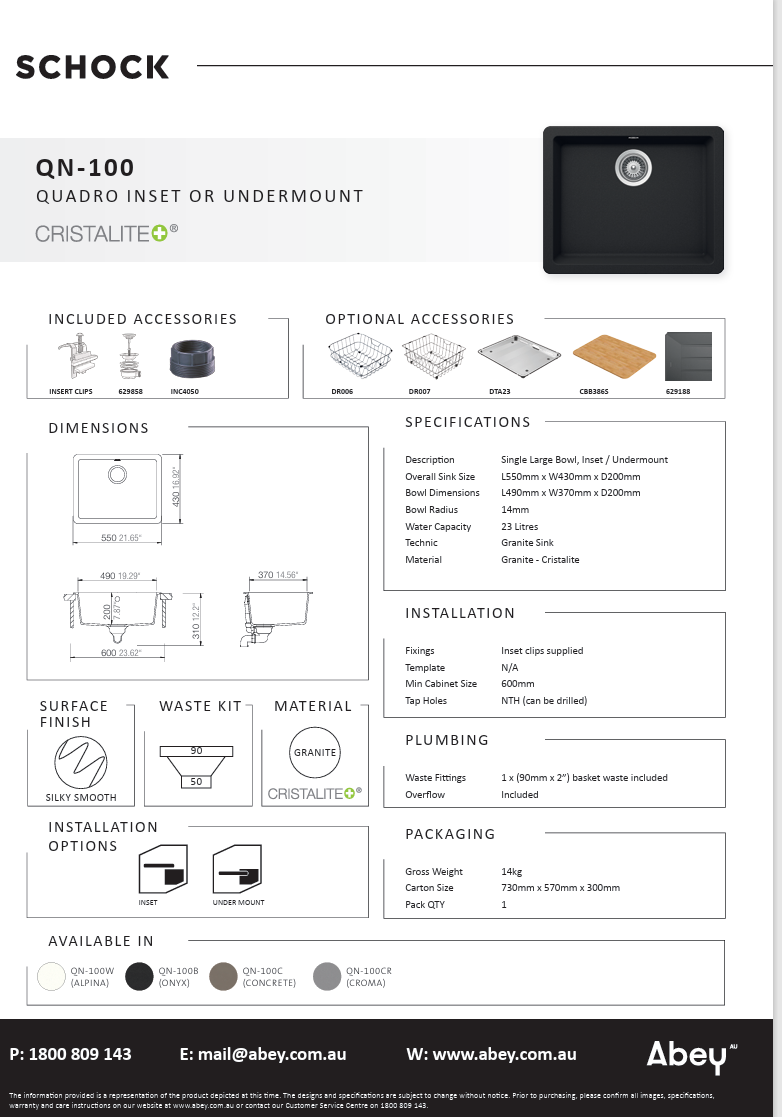 QUADRO CONCRETE LARGE SINGLE BOWL