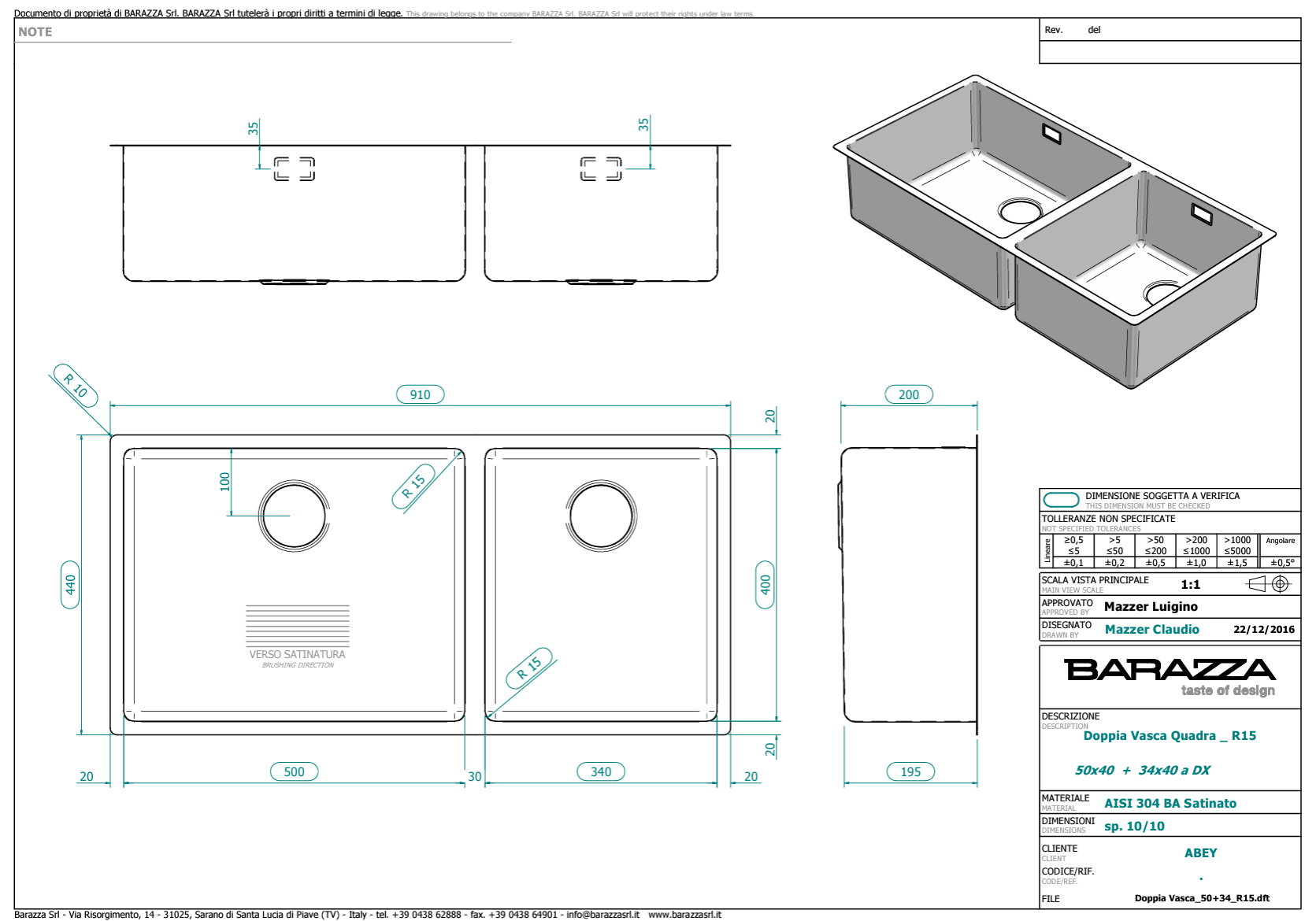 Italian Designed and Manufactured, this modern sink is made from commercial quality 1mm thick 304 Stainless Steel. With a minimal radius, the sink is both stylish and easy to clean.