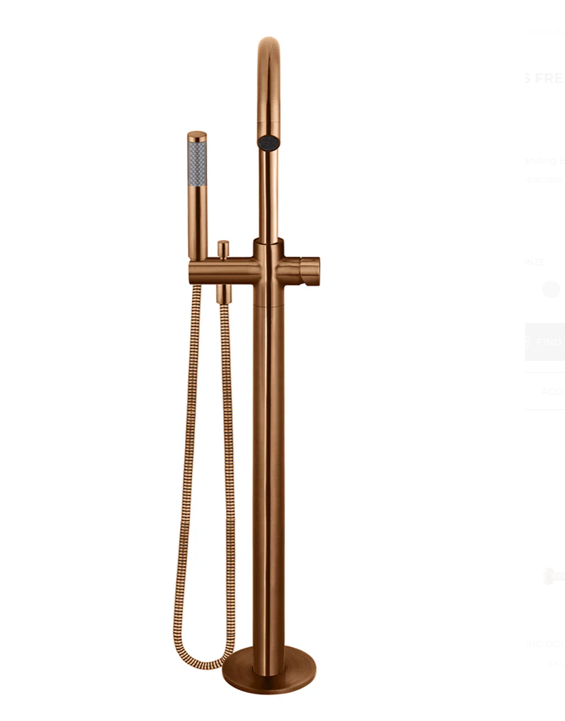 Round Freestanding Bath Spout and Hand Shower - Pinless Handle