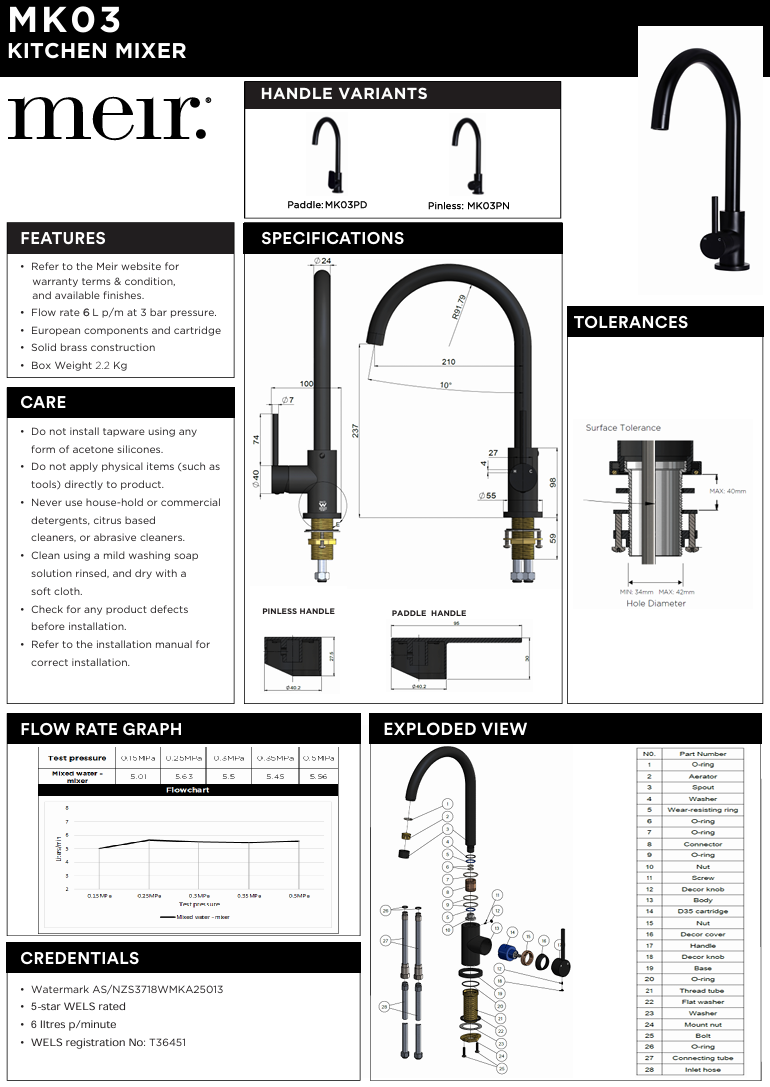 – 5-star WELS rating; water efficiency of 6 Litres per minute