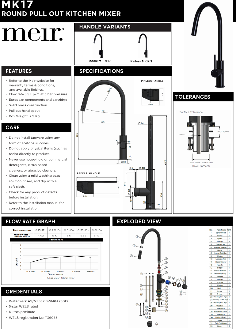 – 5-star WELS rating; water efficiency of 6 Litres per minute