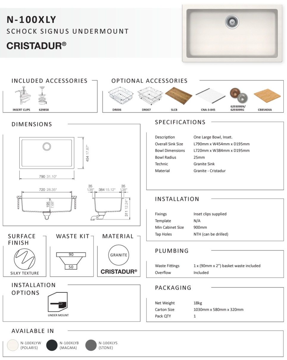 SIGNUS MAGMA SINGLE BOWL UNDERMOUNT SINK
