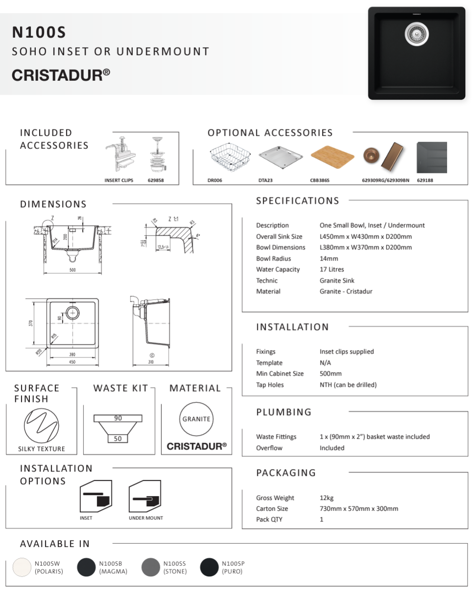 SOHO MAGMA SINGLE SMALL BOWL SINK